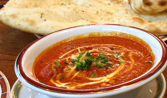 5-Gänge Menü mit Haus Cocktail, delikaten warmen und kalten Vorspeisen, drei verschiedene Gerichte mit indischen Saucen und gemischten Köstlichkeiten aus dem Tandoori, Reis, Naan und Salat, Dessert Variation und Digestif oder Kaffee
